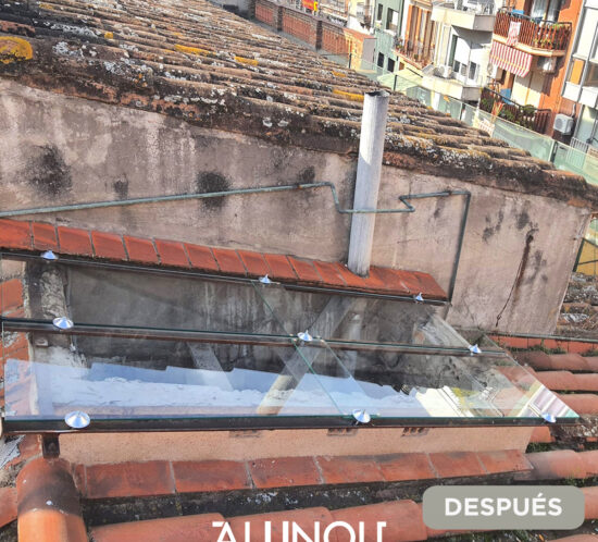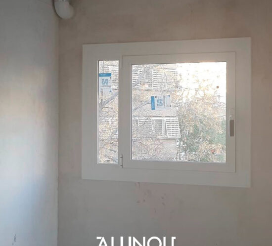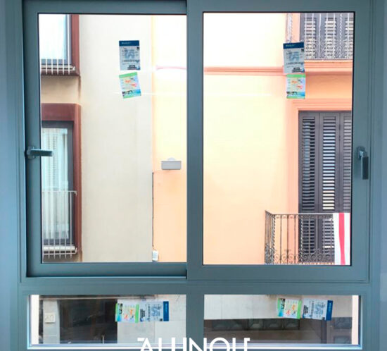 En este caso, realizamos la instalación de ventanas exteriores de un inmueble en Mataró, con carpintería de aluminio anodizado plata mate, con rotura de puente térmico, cristal bajo emisivo con control solar.